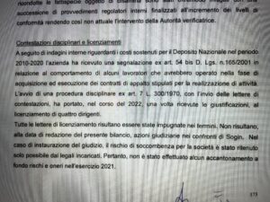 Come sembrerebbe inspiegabile che il management della Sogin non abbia considerato che questi licenziamenti non avessero potuto avere alcun costo per l’azienda. Dato che emerge dal bilancio aziendaleesattamente a pag. 173 (Contestazioni disciplinari e licenziamenti), dove tutta la linea seguita sarebbe stata valutata talmente blindata, al punto da reputare che tutto sarebbe stato fatto così tanto bene, da non ritenere nemmeno opportuno accantonare nessuna somma per il fondo rischi e oneri per l’esercizio 2021.
